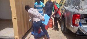 En compagnie du Directeur Départemental de l’Industrie et du Commerce du Borgou-Alibori, Rufus SARE, l’équipe de ANM conduite par le Directeur de l’inspection et du Contrôle Qualité, Philéas PATINVOH a fait le constat satisfaisant de la conformité du poids des bouteilles de gaz dans les stations services sillonnées.